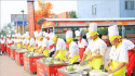 在刀工阶段考核现场,同学们精神抖擞,整齐干净的厨师服,俨然一道风景线。哨声响起,同学们个个化身为武林高手,刀起刀落,切声顿起,“嘈嘈切切错杂弹”,汇出动听的节奏。