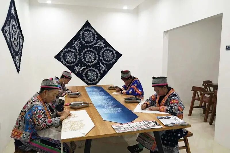 据介绍,蜡染技艺为国家级非物质文化遗产。安顺素有“蜡染之乡”的美誉,蜡染在安顺已有上千年历史。为了传承和发展好这一传统技艺,经开区在神骏文旅小镇打造了7000余平米的艺术殿堂——安顺蜡染馆。
