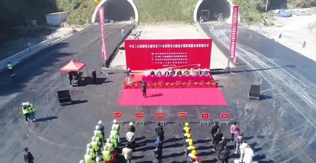 11月12日上午11点,贵州高速集团都安项目11标毛尖隧道左幅顺利贯通,该隧道在历经958个日夜攻坚后实现了全线贯通。