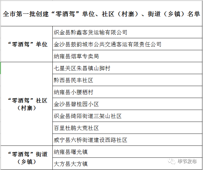 毕节首批“零酒驾”名单来了,有你在的地方吗?