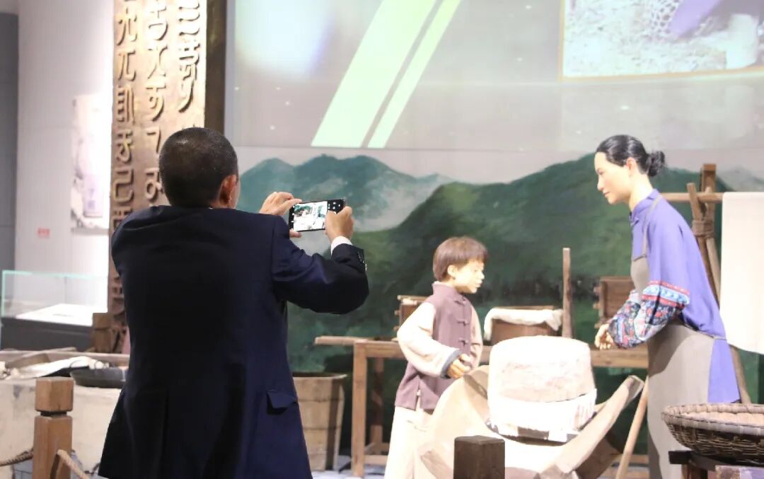 馆内还原了邓恩铭烈士生前生活的环境,榕树脚下的医馆,朗朗读书声的书院,还有儿时的邓恩铭与母亲磨豆腐的画面,一幕幕逼真的场景引得游客拍照留念。