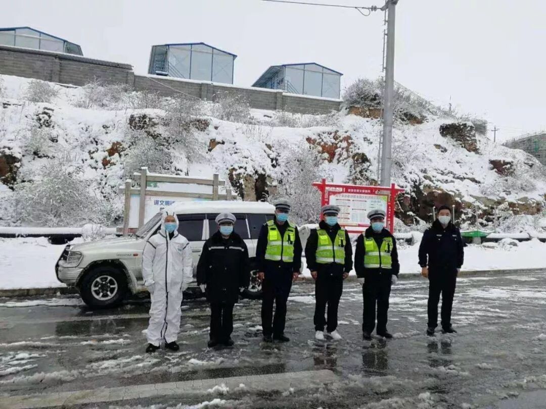 面对疫情,全市公安系统的民警、辅警在辖区内重点部位检查巡控;对进出城人员进行体温测量并对过往车辆进行检查。