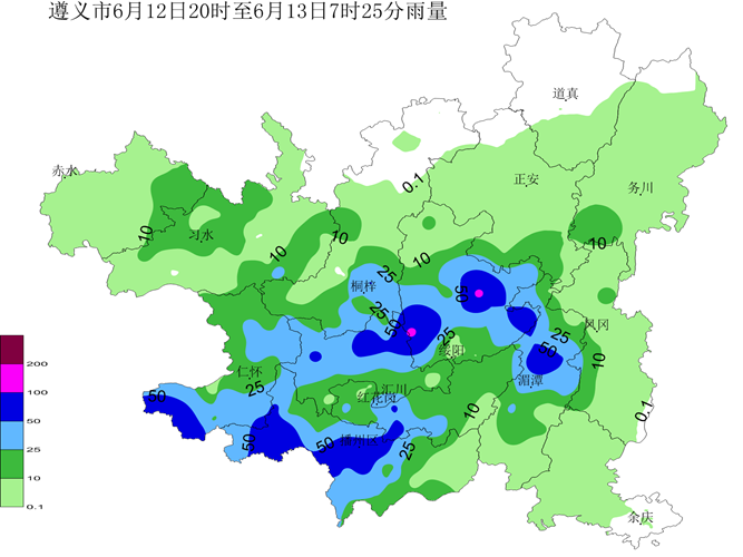 6月12日20时~13日7时25分降雨量
