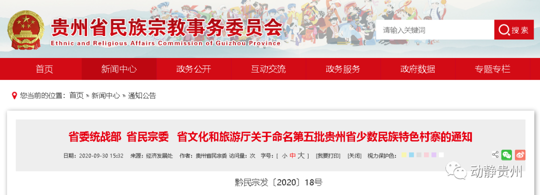 近日,贵州省民族宗教事务委员会网站发布了《省委统战部省民宗委省文化和旅游厅关于命名第五批贵州省少数民族特色村寨的通知》。经县级推荐、市级审核,专家评审,媒体公示,省委统战部、省民宗委、省文化和旅游厅决定命名320个村寨为第五批“贵州省少数民族特色村寨”并授牌。其中遵义市11个。