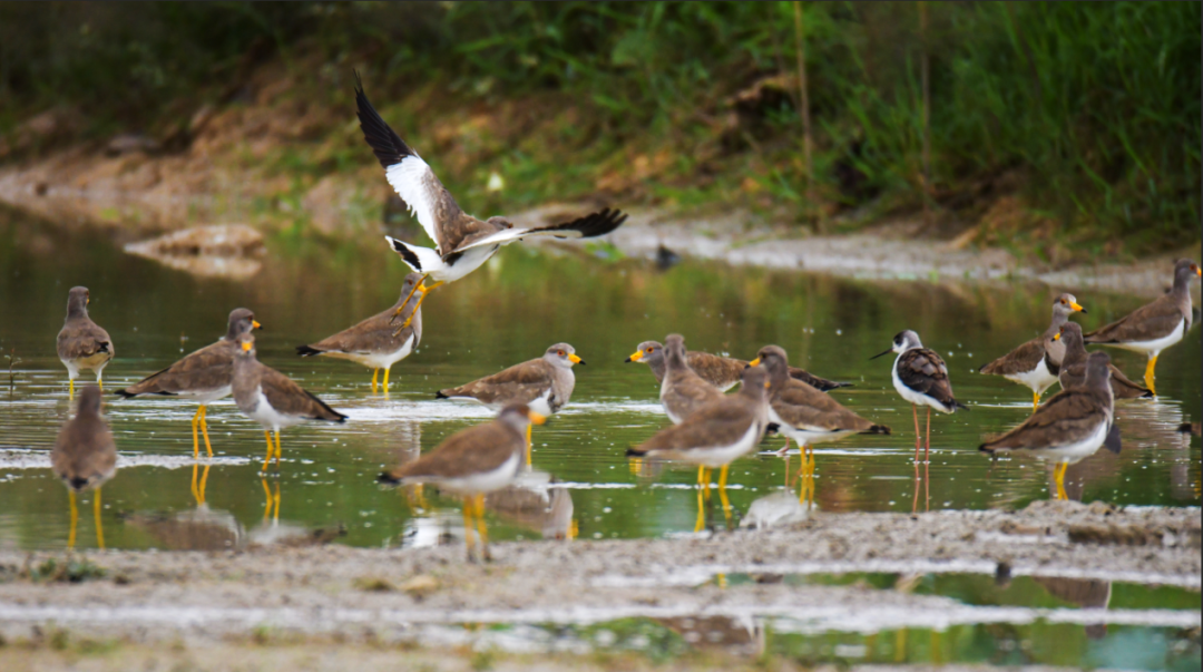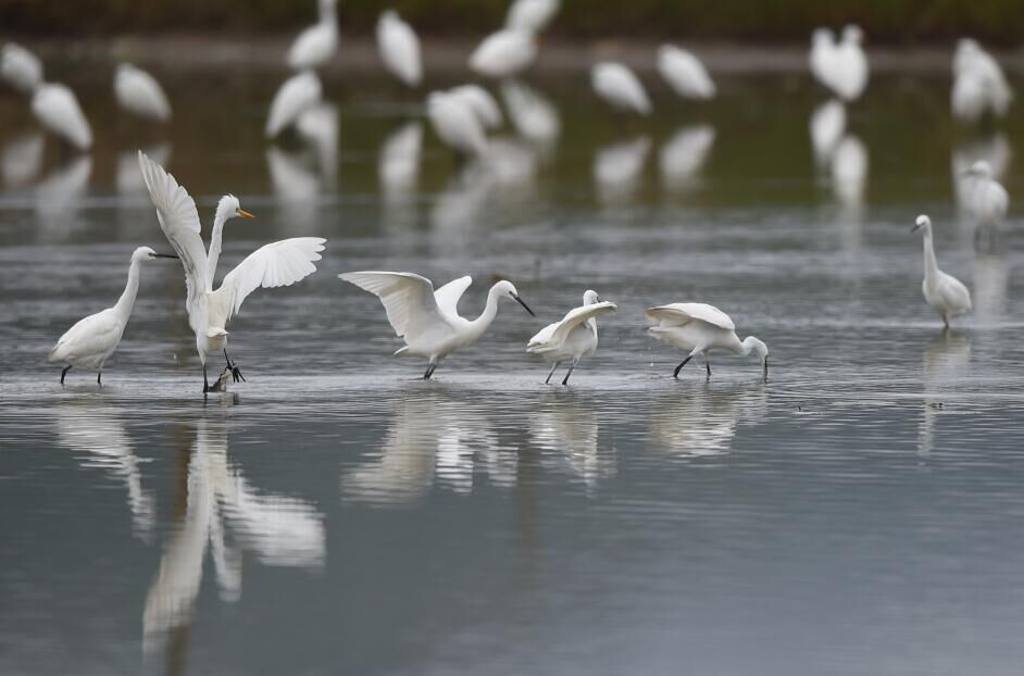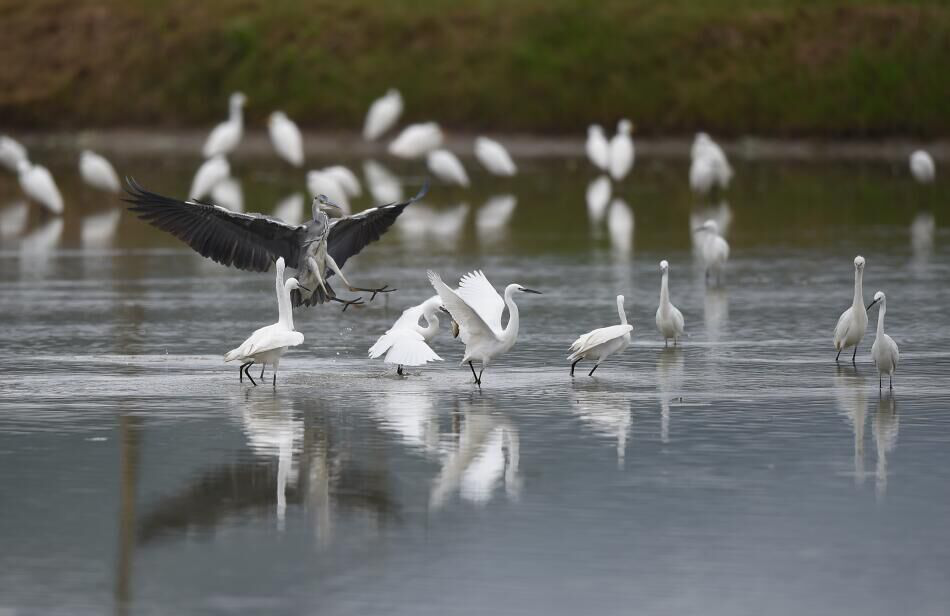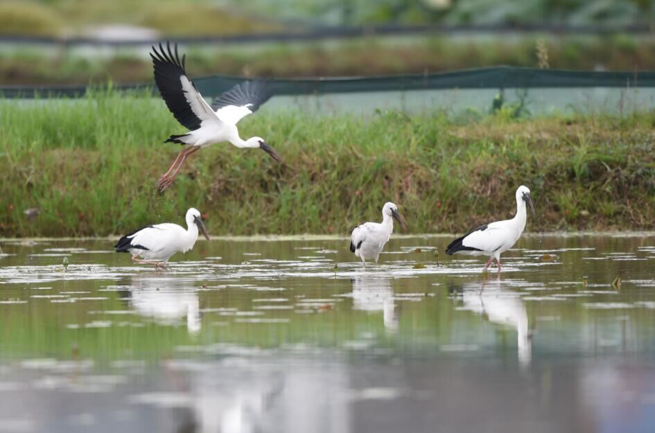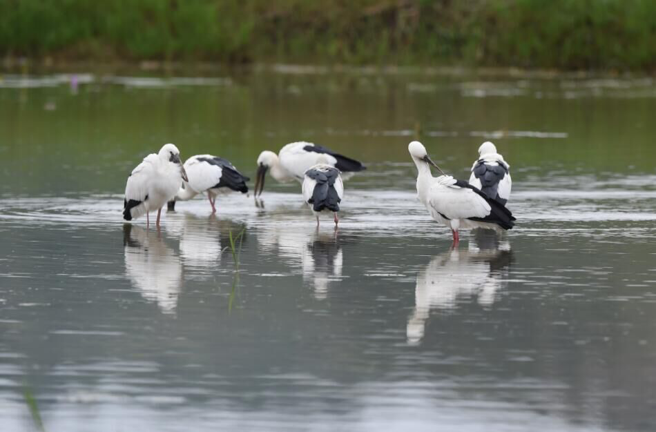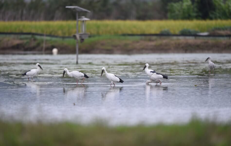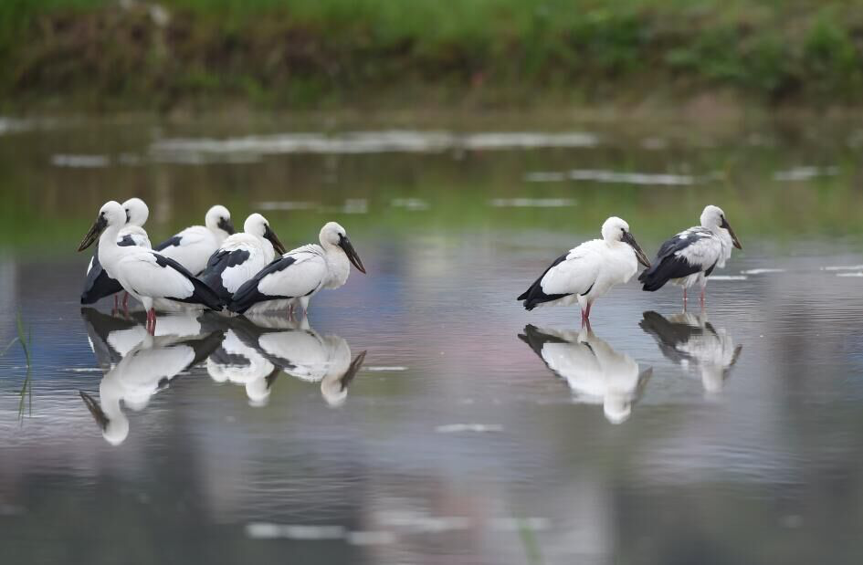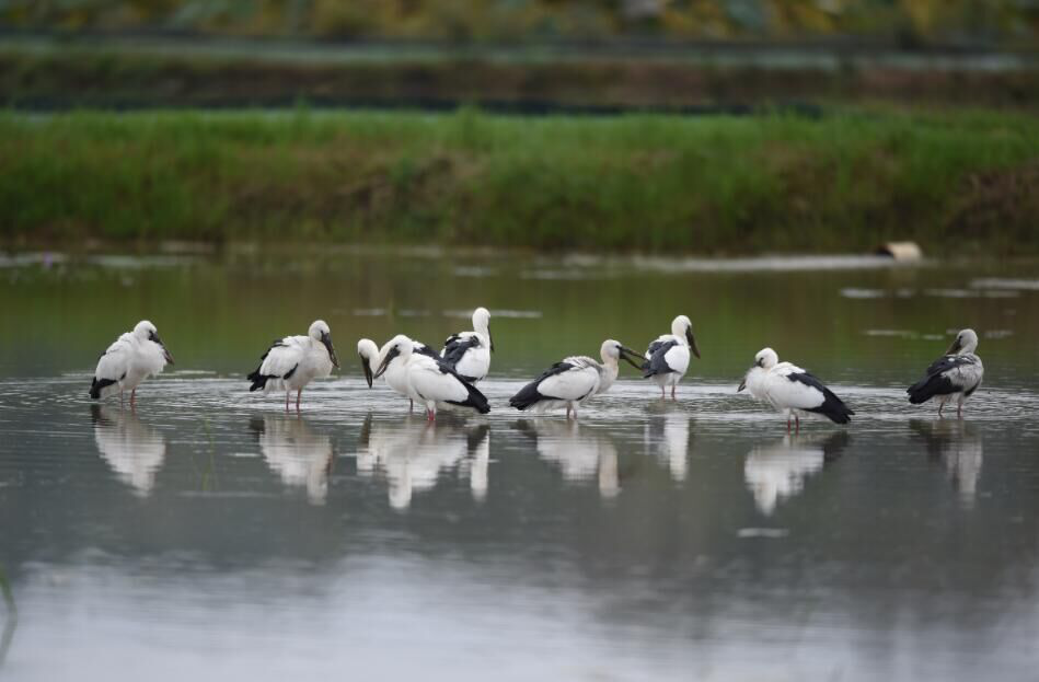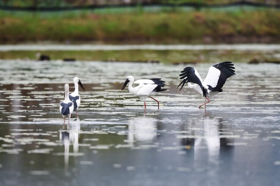 钳嘴鹳属鹳科动物,系迁徙鸟类,是世界濒危物种、国家二级重点保护野生动物。体羽白色至灰色,冬羽烟灰色,飞羽和尾羽黑色,下喙有凹陷,喙闭合时有明显缺口,脚粉红色。喜欢在沼泽地和沿海滩涂觅食田螺、鱼等软体动物。主要生活在东南亚地区的老挝、泰国、缅甸、印度等国家,每年春季到6月是它们的迁徙时间。2013年,钳嘴鹳被列入《世界自然保护联盟》濒危物种红色名录。