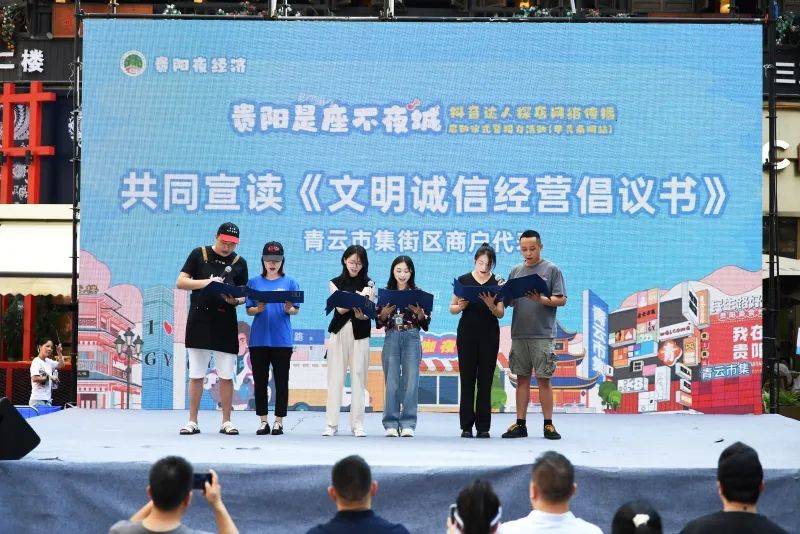 在当天的活动现场,通过猜谜、歌舞表演及贵阳是座不夜城美食地图推介及发布、美食街区代表推介、青云市集商户代表宣读《文明诚信经营倡议书》、为贵阳是座不夜城官方种草官授牌等拉开了2025年“贵阳夜经济·贵阳是座不夜城”抖音达人探店网络传播暨接力活动的序幕。